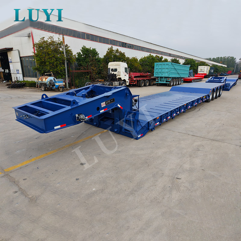 Med hensyn til designdetaljer tager Luyis 4-akslede lavsengs-sættevogne fuldt ud hensyn til det naturlige miljø og driftsscenarier i Burkina Faso. De lokale klimakarakteristika med høj temperatur og tungt sandstøv stiller højere krav til køretøjsdeles slidstyrke. Derfor er bremsesystemet på de 4-akslede low-bed sættevogne opgraderet til højtemperaturbestandige keramiske bremseklodser, og dækkene er terrænmønsterdæk med antiældnings- og antipunkteringsfunktioner. Selv ved kørsel i sand- og støvvejr eller grusveje, er den4-akslede lav-sengs sættevognekan sikre bremsefølsomhed og kørestabilitet. Derudover er frihøjden på lavbedskonstruktionen af de 4-akslede lavsengs-sættevogne kun 0,75 meter. Med den hydraulisk justerbare haleplade og sidefastgørelsesanordninger kan de 4-akslede lavsengs-sættevogne fuldføre lastning og losning af stort udstyr uden at være afhængig af store kraner, hvilket forkorter den enkelte lastning og losningstid fra 2 timers traditionelle køretøjer til 40 minutter og i høj grad forbedre materialeomsætningseffektiviteten af infrastrukturprojekter.