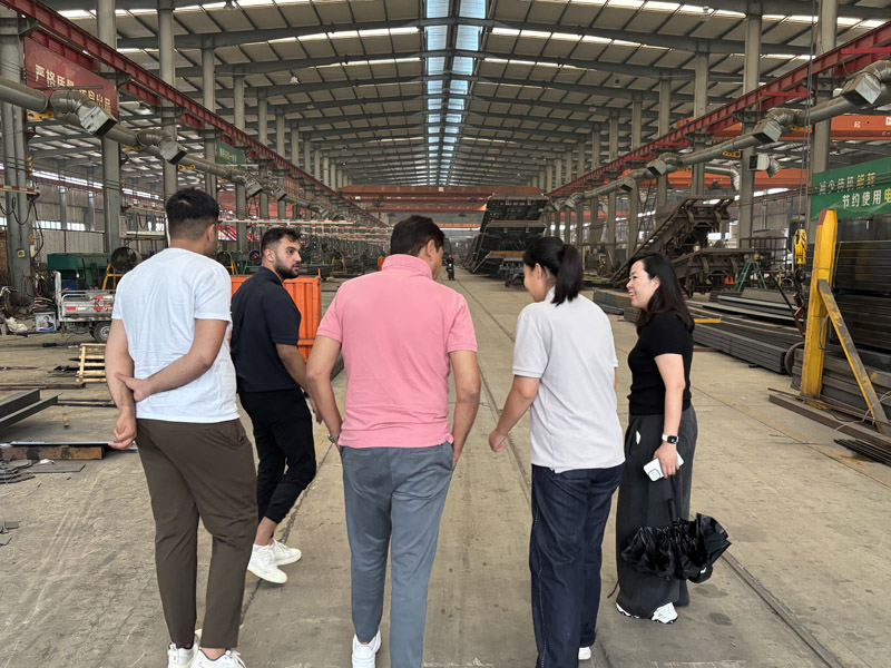 Under vejledning af personalet på Luyi Factory gik de sydafrikanske købmænd først ind i råvareforarbejdningsværkstedet for fladvogne. På værkstedet bliver højstyrkestål gradvist omdannet til kernekomponenterne i fladvogne gennem præcis skæring, slibning og andre processer. Personalet introducerede i detaljer til de sydafrikanske købmænd, at de flatbed-sættevogne produceret af Luyi Factory strengt kontrollerer udvælgelsen af råmaterialer, og alle anvender højstyrkestål, der opfylder internationale standarder. Denne type stål kan ikke kun forbedre den samlede bærende ydeevne af denladvogne, men forlænger også effektivt levetiden på flatbed-sættevognene, hvilket er fuldt egnet til holdbarhedskravene på det sydafrikanske marked for fragtudstyr. De sydafrikanske købmænd lyttede omhyggeligt til forklaringen og stoppede fra tid til anden op for at observere detaljerne i råmaterialebearbejdningen og udtrykte deres anerkendelse af Luyi Factorys strenge holdning i kontrollen af råmaterialer til semitrailere med lad.