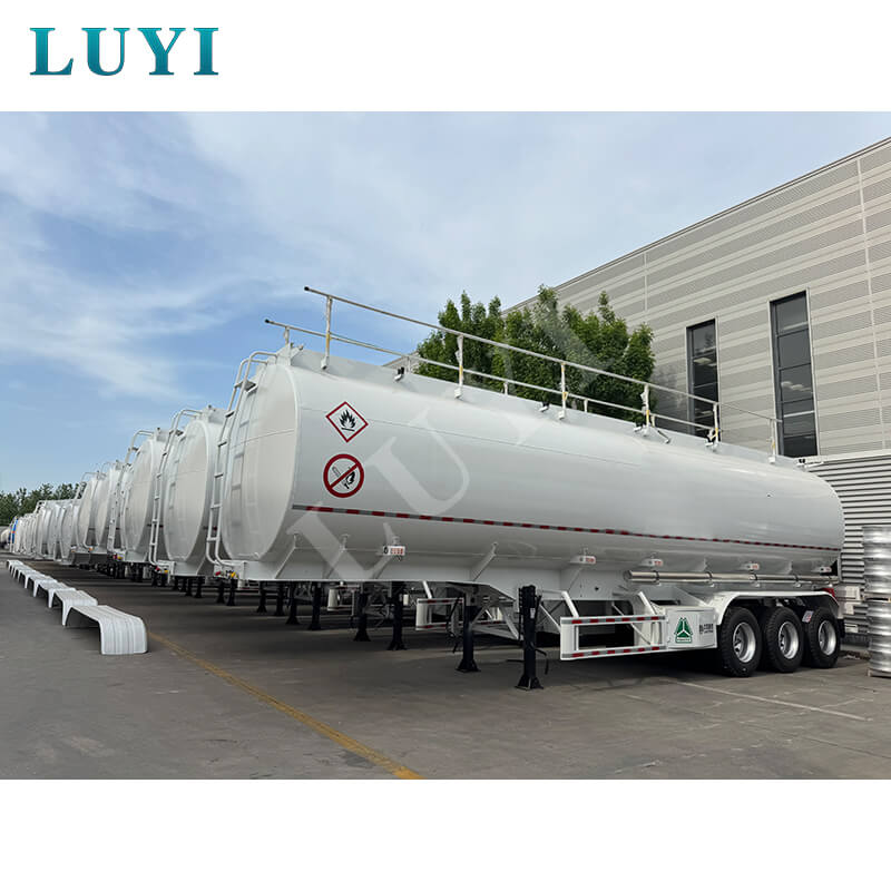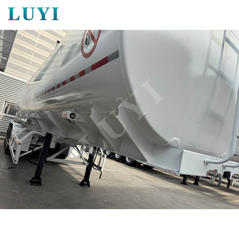 LUYI 3-akslet 45/50 kubikmeter olietanksættevogn, et højtydende brændstoftransportkøretøj fra Shandong, Kina, er bygget med kulstofstål Q345 og højkvalitetsstål, der balancerer holdbarhed og bæreevne. Den opfylder både olietanktransport og 20ft/40ft containertransportbehov med stærk alsidighed.