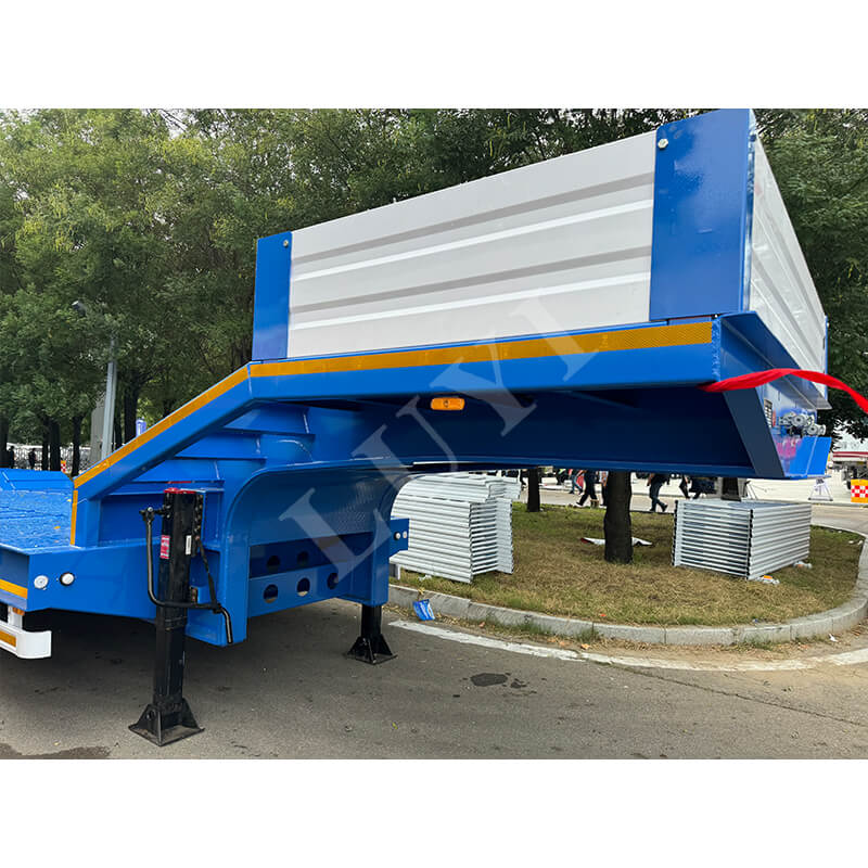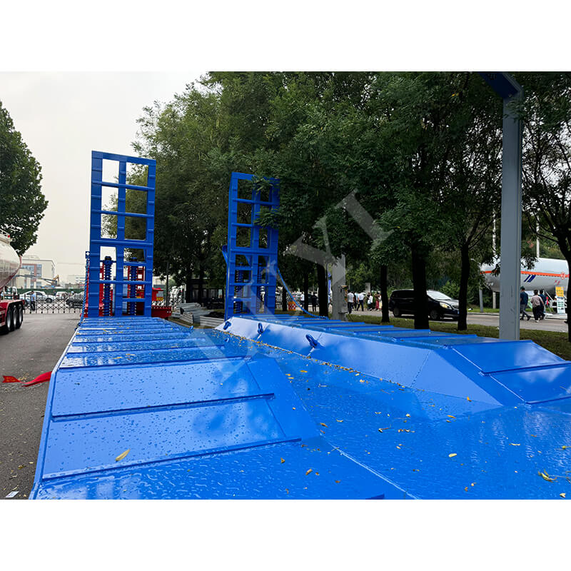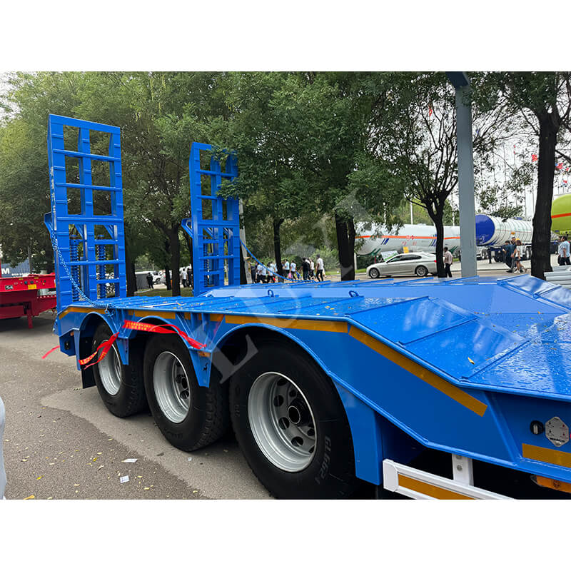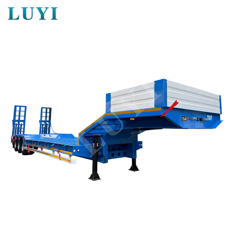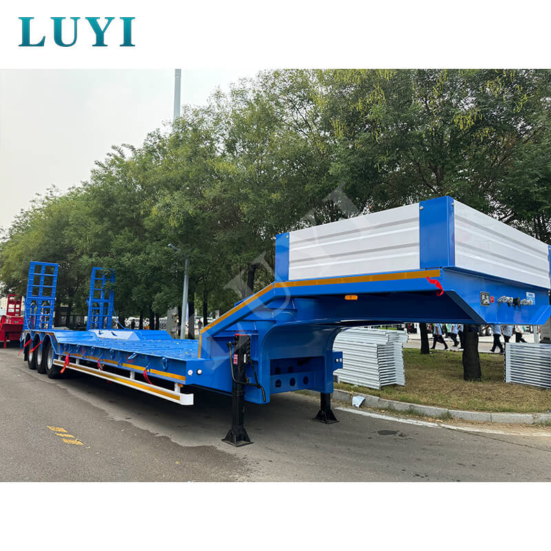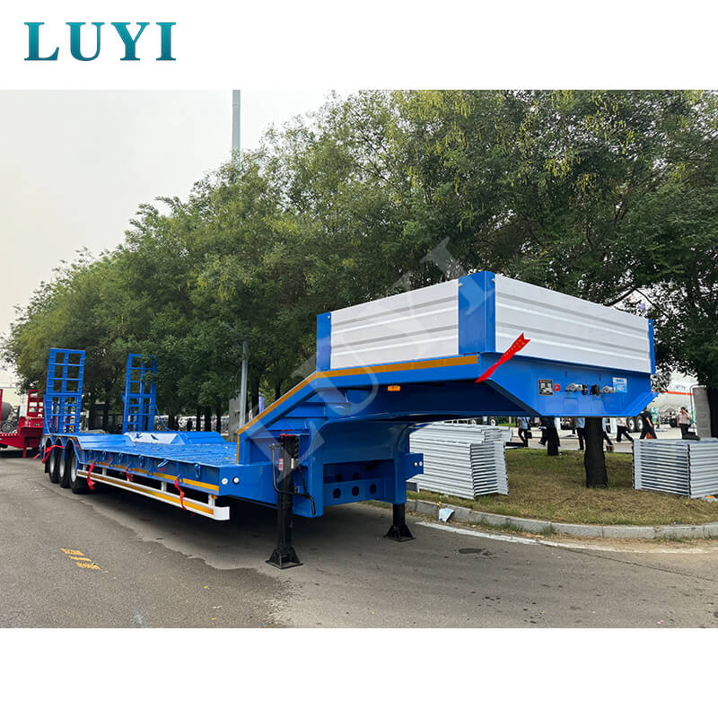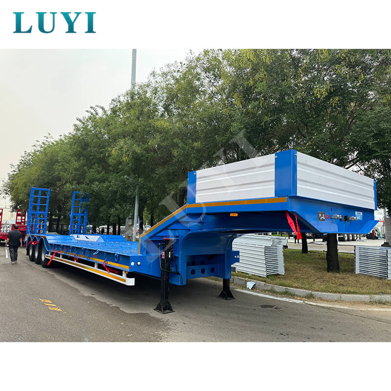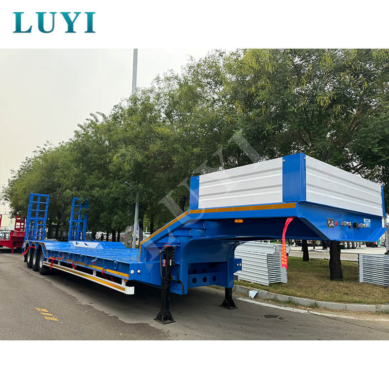 Luyi 3-akslet Lowboy Semi-Trailer, der stammer fra Shandong-provinsen, Kina, er en lastbiltrailer af høj kvalitet, der er specielt designet til containertransport. Den er konstrueret med stål og kan prale af robust og holdbar ydeevne. Akslerne tilbyder valgfri konfigurationer af 13/16-tons modeller fra kendte mærker som FUWA, BPW og CIMC, med en maksimal effektiv nyttelast på over 30.000 kg og tilpasselig lastbærende kapacitet.