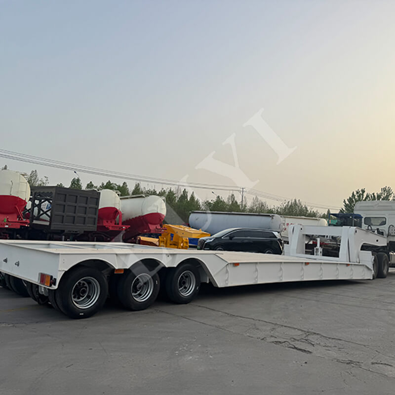 Traileren tilbyder to materialemuligheder: kulstofstål og aluminium, balancering af strukturel styrke og letvægtsbehov. Med en maksimal nyttelast på 80 tons kan den effektivt håndtere transport af tungt udstyr. Den har et 6-akslet design, udstyret med velkendte mærkeaksler (Fuwa eller BPW) og matchet med dæk i flere specifikationer (12R22.5, 12.00R20, 11R22.5). Mekaniske eller luftaffjedringssystemer er valgfrie for at sikre kørestabilitet og lastsikkerhed.