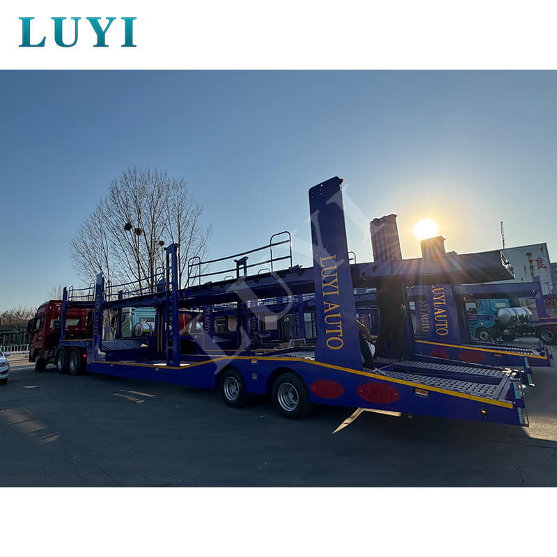 LUYI 17m dobbeltakslet køretøjstransportsættevogn, der er i stand til at transportere 8 køretøjer, stammer fra Shandong-provinsen, Kina. Det er en sættevogn, der er specielt designet til transport af flere biler, velegnet til lastbiltrailerscenarier og giver en effektiv løsning til billogistikindustrien.